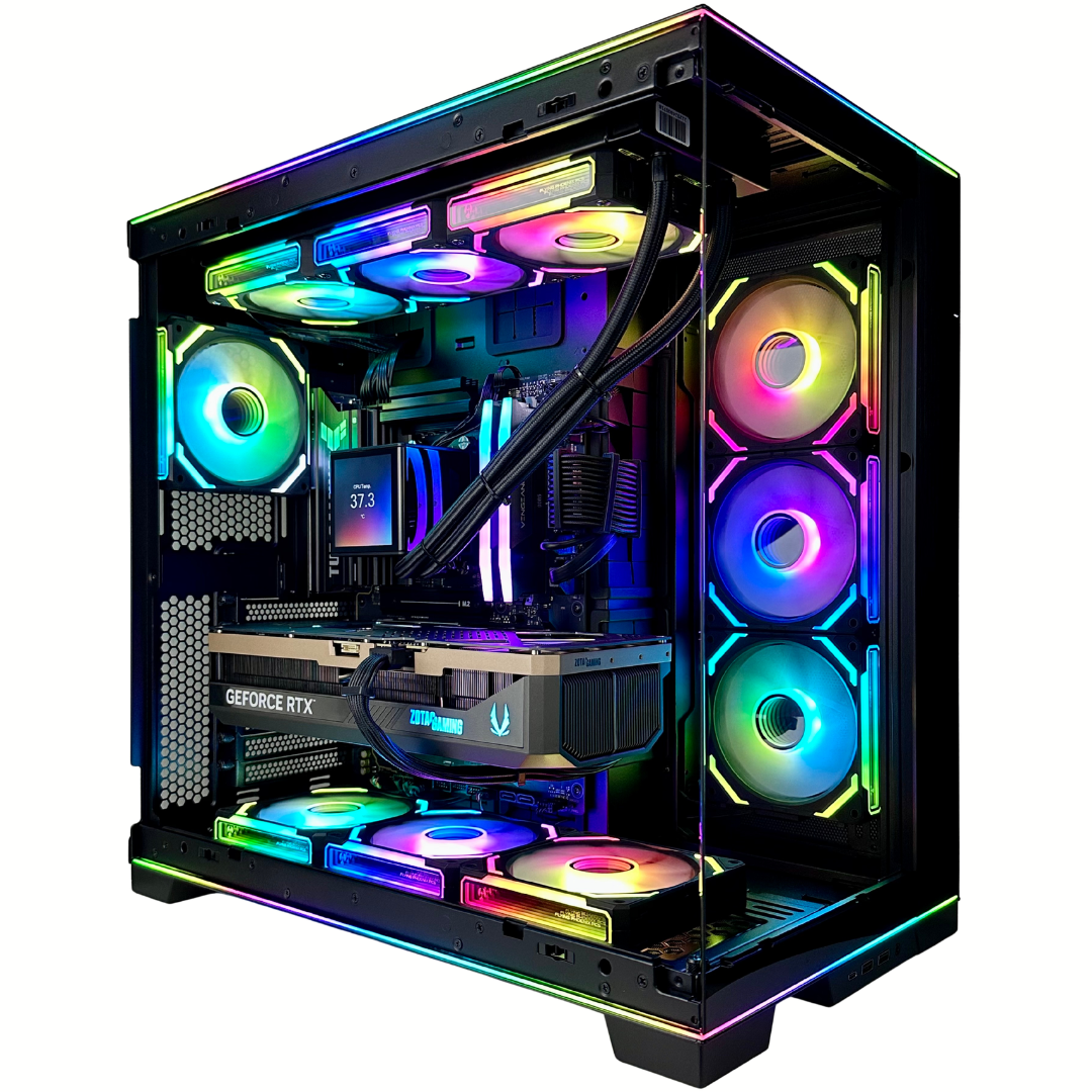 Case: Black LIAN LI O11 Dynamic EVO RGB with 4-120mm Black AsiaHorse Cosmiq Infinity Style A-RGB Fans + 6-120mm Black Reverse AsiaHorse Cosmiq Infinity Style all controllable to a variety of colors and effects with preinstalled motherboard software