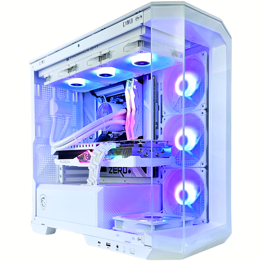 Case: White MSI MAG PANO M100R PZ M-ATX Case with 7-120mm A-RGB Case Fans all controllable to a variety of colors and effects with preinstalled motherboard software