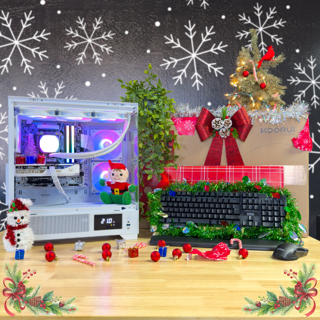 White Pro Gaming PC Bundle - NVIDIA RTX 5060 Intel 14400F, 200Hz 1440p Monitor, Keyboard/Mouse Combo