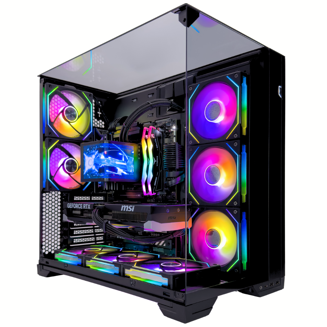 Case: Black Lian Li 011 Vision Compact Case with 8-120mm Black LIAN LI UNI FAN SL-INF A-RGB Fans all controllable to a variety of colors and effects with preinstalled motherboard software