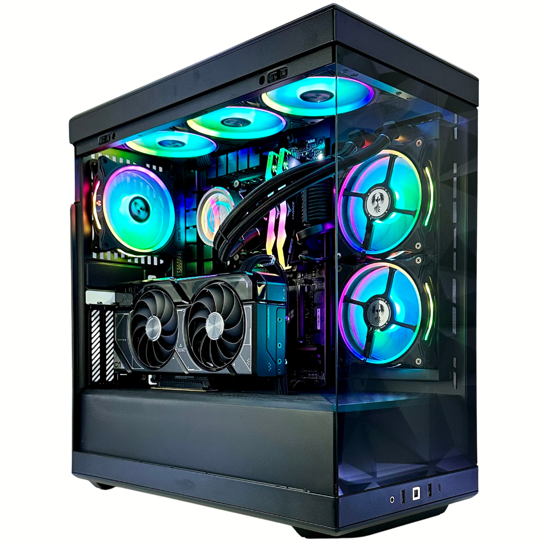 Case: Black HYTE Y40 Case with 6-120mm Black AsiaHorse Pro A-RGB Fans all controllable to a variety of colors and effects with preinstalled motherboard software