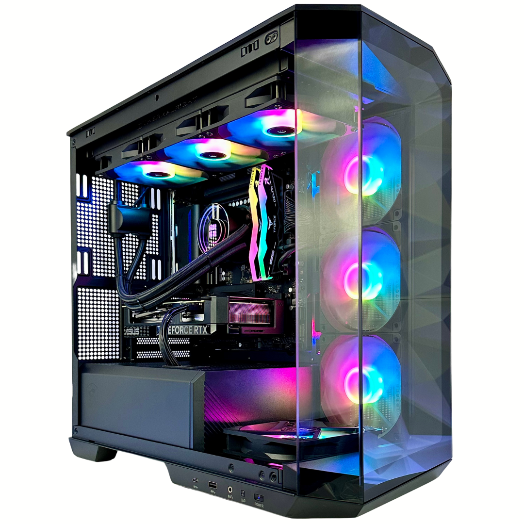 Case: Black MSI MAG PANO M100R PZ M-ATX with 7-120mm A-RGB Case Fans all controllable to a variety of colors and effects with preinstalled motherboard software