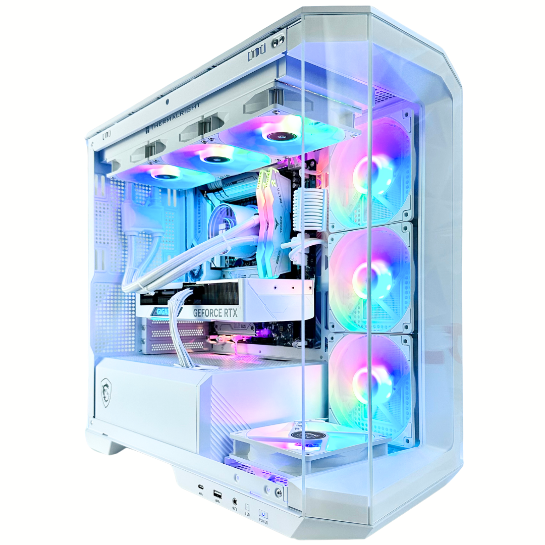 Case: White MSI MAG PANO M100R PZ M-ATX with 7-120mm A-RGB Case Fans all controllable to a variety of colors and effects with preinstalled motherboard software