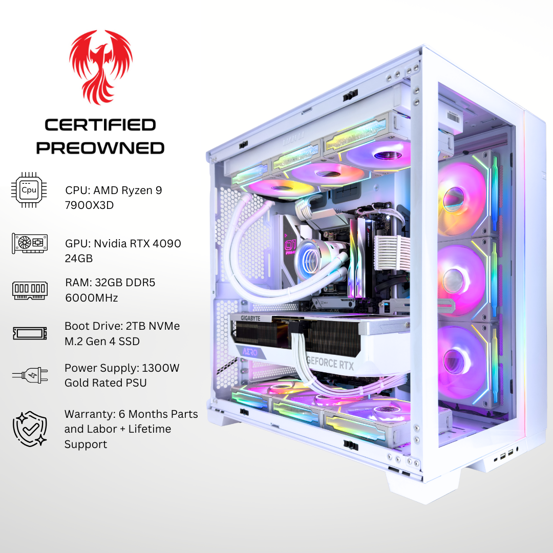Certified Pre Owned Phoenix - NVIDIA RTX 4090 AMD Ryzen 9 7900X3D 32GB DDR5 RAM 2TB SSD Gaming PC