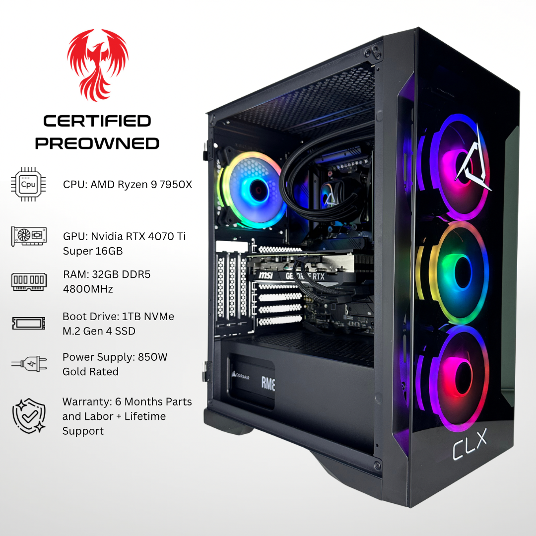 Certified Pre Owned Eagle - Nvidia RTX 4070 Ti Super AMD Ryzen 9 7950X 32GB DDR5 RAM 1TB SSD RGB Gaming PC