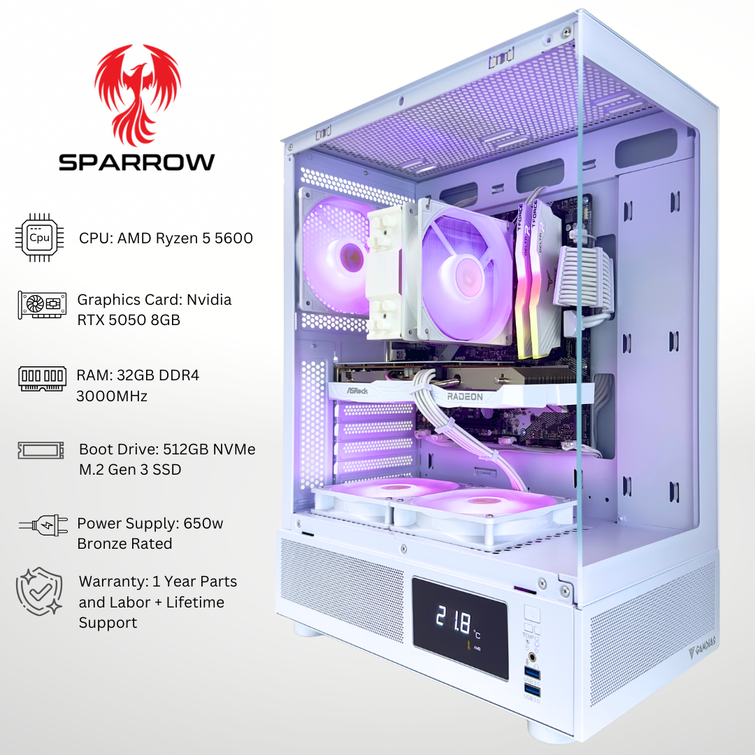 White Sparrow - Nvidia RTX 5050 Ryzen 5 5600 32GB DDR4 RAM 512GB SSD RGB Gaming PC