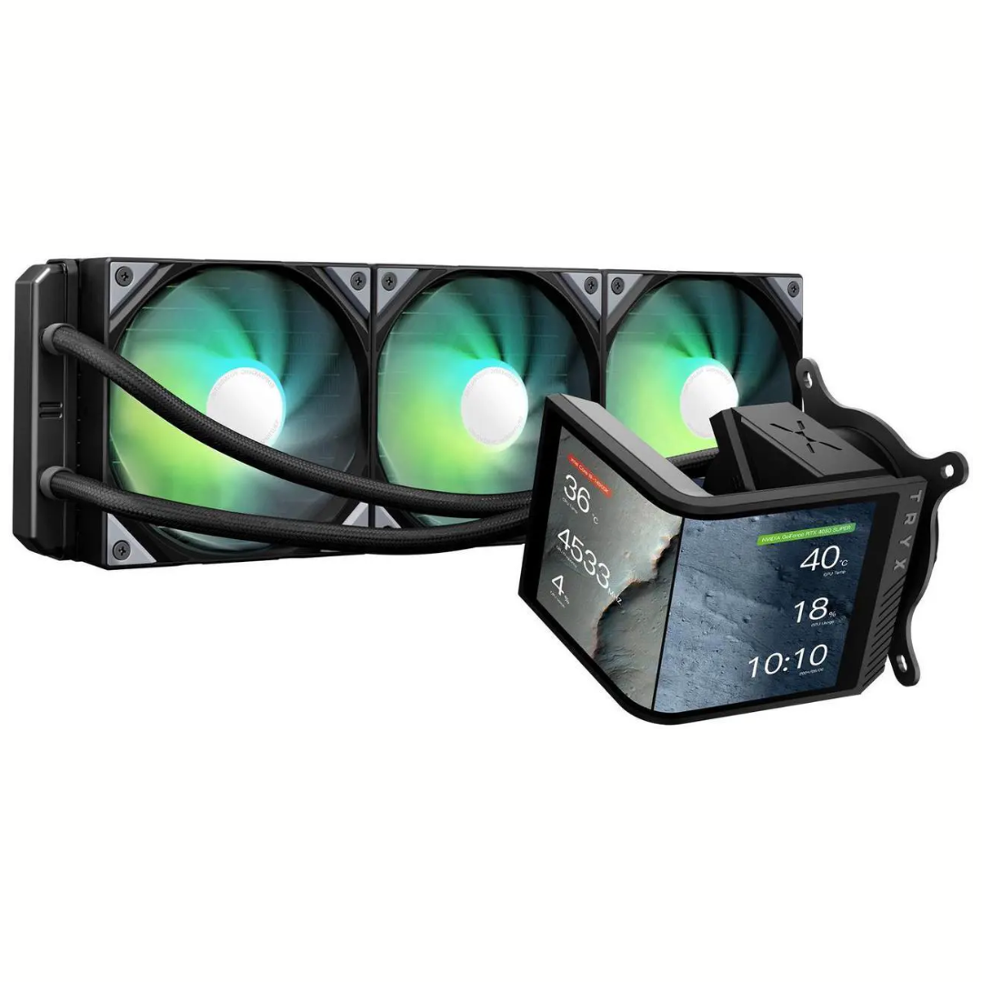 360mm AIO Liquid Cooler with 3-120mm A-RGB Fans and 6.5'' AMOLED Curved Screen Customizable LCD Screen